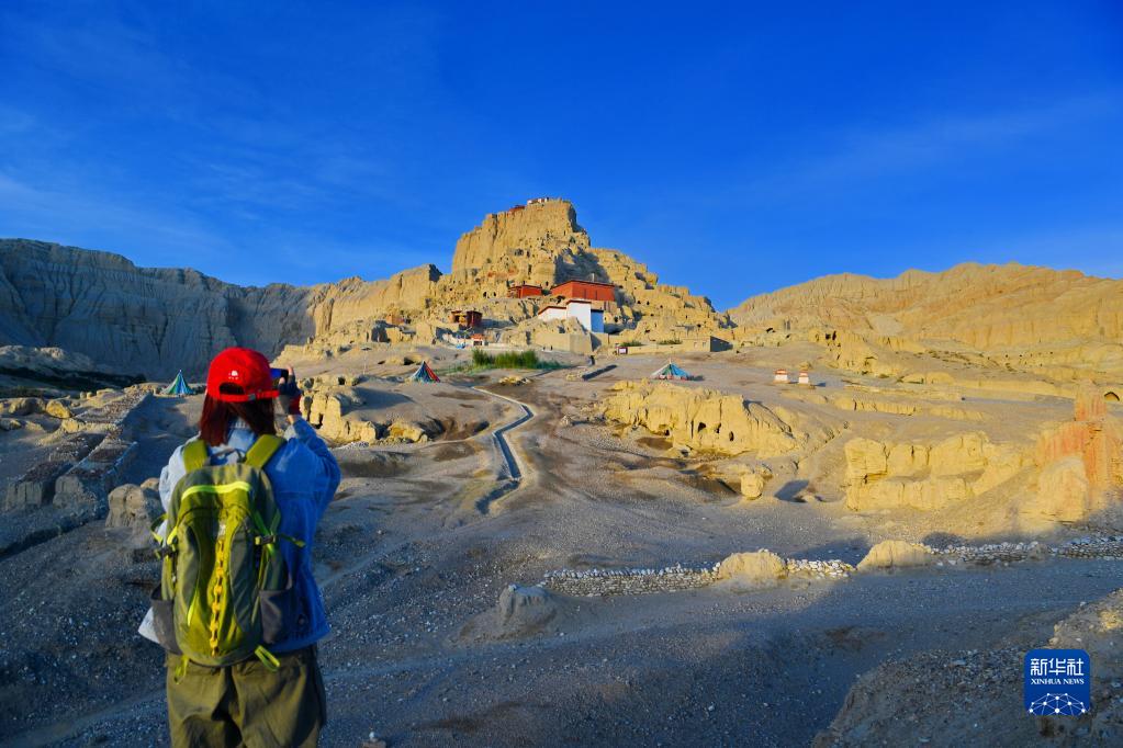 近日,位于西藏自治區(qū)阿里地區(qū)札達(dá)縣的扎達(dá)土林、古格王國(guó)遺址等地質(zhì)、人文景觀吸引游客到訪(fǎng)游玩。