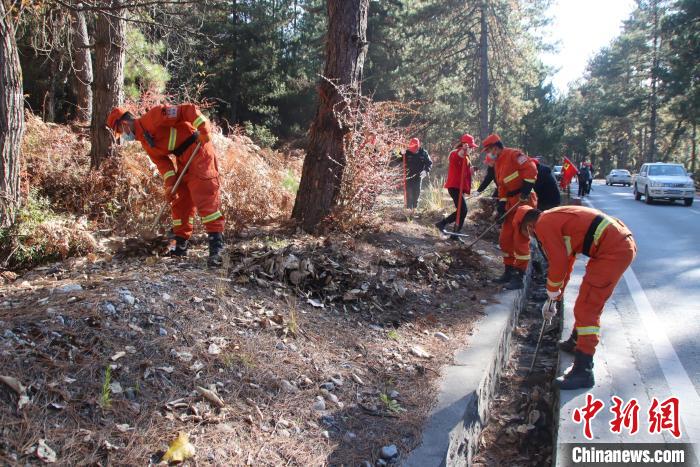消防隊(duì)員和地方民眾一起清理林下可燃物。 王澤棟 攝