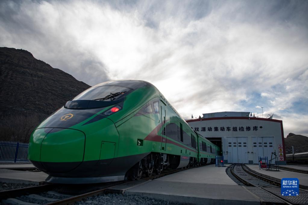 在拉薩機輛整備中心,動車組在檢修庫進行整備作業(yè)(1月10日攝)。新華社記者 孫非 攝