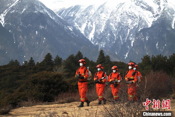 圖為森林消防隊(duì)員開展攜裝巡護(hù)。林芝市森林消防支隊(duì) 攝