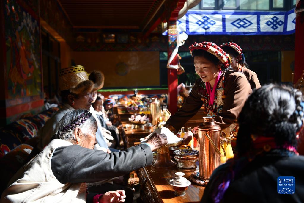 “小時候過年也有羊頭、切瑪可以吃?!贝蔚├先苏f,“但和今天不同的是,即便是一年中最豐盛的一頓飯,我們也只能吃兩口嘗個味道,沒辦法敞開肚子吃飽。”