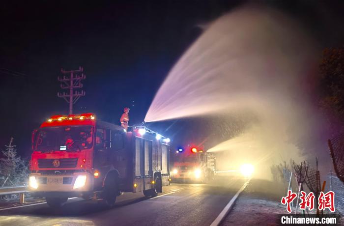 圖為森林消防員正在進行灑水增濕作業(yè)。 林芝市森林消防供圖
