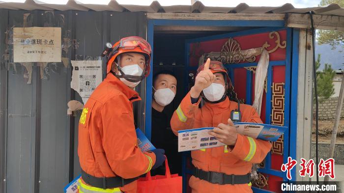 圖為森林消防員在景區(qū)重點區(qū)域普及防火知識。 林芝市森林消防供圖