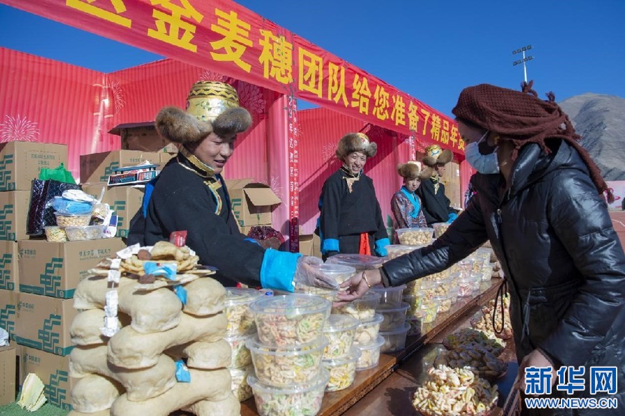 2023年達(dá)孜區(qū)首屆年貨樂(lè)購(gòu)交易會(huì)活動(dòng)現(xiàn)場(chǎng)(2月6日攝)。新華網(wǎng) 旦增努布 攝