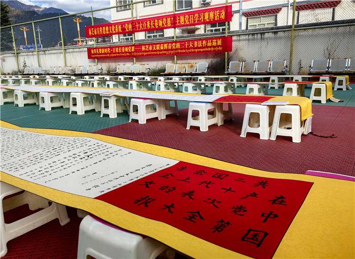 創(chuàng)新載體,全方位宣傳。林芝市統(tǒng)籌各類宣傳資源,線上線下同頻共振,全方位、多角度、寬領(lǐng)域、深層次宣傳黨的二十大精神和區(qū)黨委十屆三次全會(huì)、市委二屆三次全會(huì)精神,營造學(xué)習(xí)宣傳的濃厚氛圍。一是新聞宣傳強(qiáng)信心。林芝報(bào)、林芝廣播電視臺(tái)、西藏林芝網(wǎng)、微林芝等市屬主流媒體紛紛開設(shè)《學(xué)習(xí)貫徹黨的二十大》《新時(shí)代新征程新偉業(yè)》等多個(gè)專題專欄,持續(xù)推出學(xué)習(xí)貫徹黨的二十大精神相關(guān)報(bào)道。截至目前,共刊播《基層宣講員讓黨的二十大精神翩翩飛入百姓家》《軍民共話美好未來 繪就美麗鄉(xiāng)村新畫卷》等相關(guān)新聞2500余條。二是社會(huì)面宣傳筑同心。采取“屏、板、欄、幅”立體宣傳方式,在全市各級(jí)黨政機(jī)關(guān)和企事業(yè)單位大門LED電子顯示屏以及市、縣城區(qū)主要街道、跨街龍門、出租車頂燈、汽車站等公共場所的宣傳媒介上滾動(dòng)播放自治區(qū)統(tǒng)一印發(fā)的宣傳標(biāo)語1.2萬余條次,更新懸掛國旗3.5萬余面,制作發(fā)放宣傳海報(bào)1.5萬張、宣傳品2500余個(gè),形成抬頭可見、隨處可學(xué)的濃厚社會(huì)氛圍。察隅縣上察隅鎮(zhèn)遲巴村村“兩委”和駐村工作隊(duì)用彩色粉筆繪制黨的二十大、“新黨章”等主題黑板報(bào),用畫筆向村民傳遞黨的最新政策,深受群眾喜愛。三是網(wǎng)絡(luò)宣傳聚民心。充分發(fā)揮新媒體平臺(tái)宣傳形式豐富的特點(diǎn),持續(xù)推送重磅報(bào)道和重點(diǎn)文章,策劃打造一批融媒體產(chǎn)品,在全網(wǎng)迅速興起學(xué)習(xí)宣傳貫徹會(huì)議精神熱潮。市委網(wǎng)信辦策劃制作短視頻《學(xué)習(xí)黨的二十大精神 談心得感悟》、“林芝融媒”抖音號(hào)推出《二十大時(shí)光》微視頻,將鏡頭對(duì)準(zhǔn)二十大代表、基層黨員群眾,展現(xiàn)全市干部群眾積極向上的良好風(fēng)貌?!鞍鸵巳诿健倍兑籼?hào)推出“黨的二十大精神快問快答”系列活動(dòng),線上線下聯(lián)動(dòng)學(xué)習(xí),推動(dòng)黨的二十大精神入腦入心?!安煊缛诿健倍兑籼?hào)策劃開展《鄉(xiāng)村振興正當(dāng)時(shí)》黨的二十大主題抖音直播活動(dòng),通過網(wǎng)絡(luò)直觀展現(xiàn)新時(shí)代察隅新農(nóng)村、新氣象、新希望。目前已開展7場直播活動(dòng),觀看人數(shù)達(dá)10萬人次。四是文藝宣傳暖人心。充分發(fā)揮市、縣(區(qū))、村三級(jí)文藝文化團(tuán)體作用,組織開展“深入生活 扎根人民”“幸福不忘共產(chǎn)黨 陽光路上夢起航”等各類文藝文化活動(dòng),精心打造文藝精品力作,用文藝活動(dòng)、文藝作品溫暖人心。截至目前,各級(jí)文藝演出隊(duì)開展文藝匯演293場次,參與人數(shù)4.2萬余人次;創(chuàng)作推出音樂作品《沐浴幸?!贰z影作品《我和國旗》、書法美術(shù)作品《建功新時(shí)代 奮進(jìn)新征程》、文學(xué)作品《黨的光輝照萬家》等文藝作品300余個(gè)。波密縣完全小學(xué)在崗云杉林景區(qū)組織開展“學(xué)習(xí)黨的二十大,爭做好少年”采風(fēng)寫生活動(dòng),學(xué)生們以文藝創(chuàng)作的形式學(xué)習(xí)黨的二十大精神,并將學(xué)習(xí)成果轉(zhuǎn)化到作品中。市民族藝術(shù)團(tuán)以深入挖掘歷史文化、講好紅色故事為主題,籌拍了微電影《立定村屹立的紅旗》。市文聯(lián)書法美術(shù)家協(xié)會(huì)理事茹輝春同志,在黨的二十大召開后用行、楷兩種書法形式撰寫了黨的二十大報(bào)告全文書卷,書卷共有八卷,每卷長30米。市委宣傳部、市文廣局、市文聯(lián)組織市書法美術(shù)家協(xié)會(huì)開展“禮贊二十大·送福進(jìn)萬家”林芝市2023年新春書法美術(shù)家“深入生活 扎根人民”送祝福和采風(fēng)活動(dòng),共開展送春聯(lián)活動(dòng)15場次,送出對(duì)聯(lián)、福字、掛軸、繪畫等作品8950幅(對(duì)),服務(wù)群眾6700余人次。