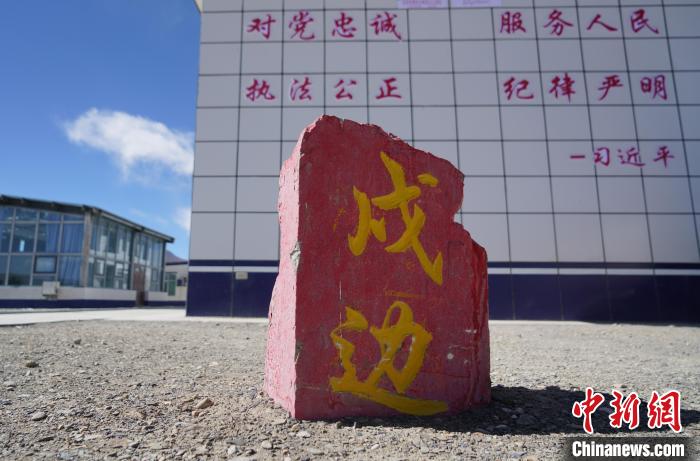 圖為派出所內就地取材做的戍邊石。貢嘎來松 攝