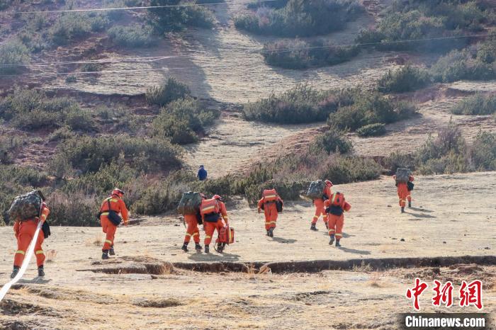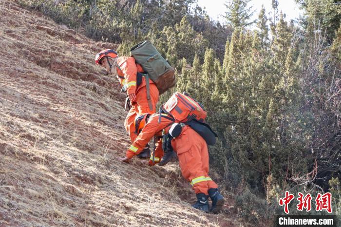 消防員正在向山頂攀登?!∫μ熹J 攝