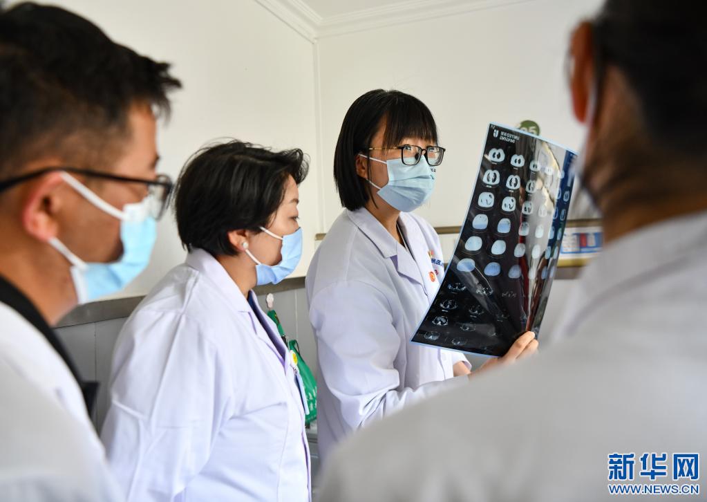 拉薩市人民醫(yī)院呼吸與危重癥醫(yī)學(xué)科主任楊蘇喬(右二)查房會診(4月28日攝)。新華社記者 晉美多吉 攝