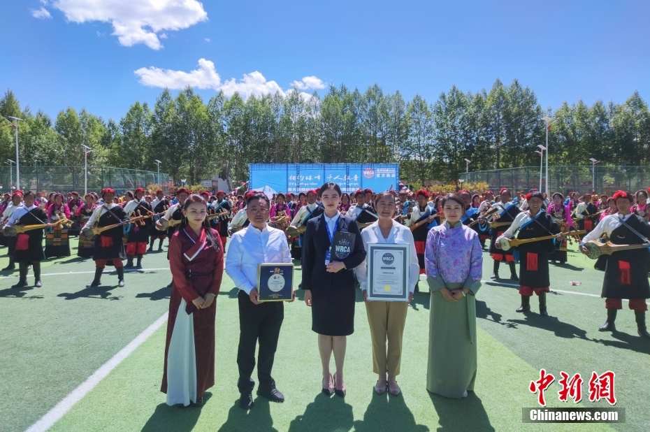 6月25日,“相約珠峰·千人弦音”西藏日喀則大型非遺歌舞展演在日喀則上海體育場舉行。經世界紀錄認證(WRCA)官方審核,該活動成功創(chuàng)造“最大規(guī)模的日喀則非遺民俗舞蹈表演”世界紀錄。
