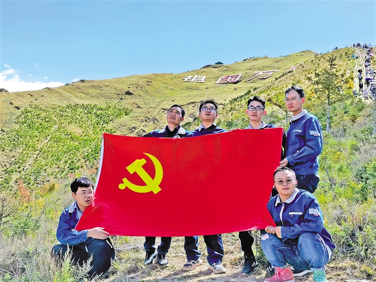 近日,中核華興區(qū)直單位援藏干部周轉(zhuǎn)房項目部黨支部開展主題登山活動。這是黨支部成員合影。 (圖片由該項目部提供)