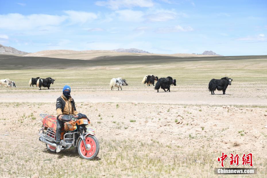圖為藏北草原上牧民騎摩托車放牧。貢嘎來(lái)松 攝