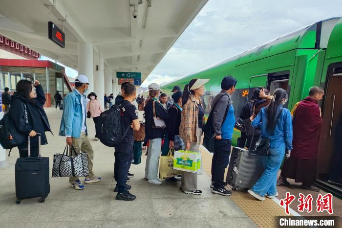 圖為暑運(yùn)期間,旅客在日喀則火車(chē)站乘坐高原復(fù)興號(hào)。拉薩車(chē)務(wù)段 供圖