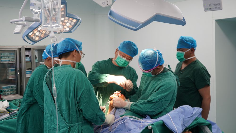 6月21日,邱波、譚楊、曹輝等專家為患者手術。