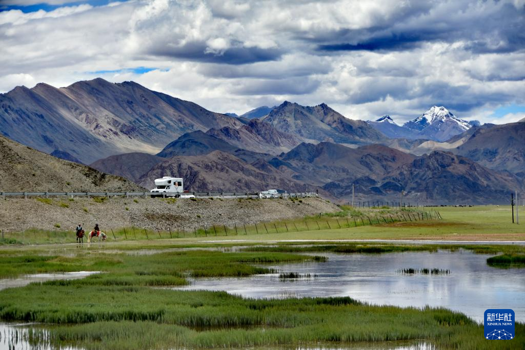 班公湖遠(yuǎn)處的雪山(7月28日攝)。新華社發(fā) (尚路航攝)