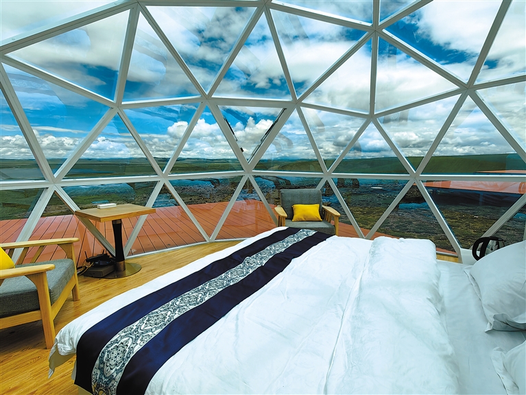 圖為夯錯(cuò)濕地暗夜星空景區(qū)戶外星空房一角。 記者 趙書彬 萬靖 攝