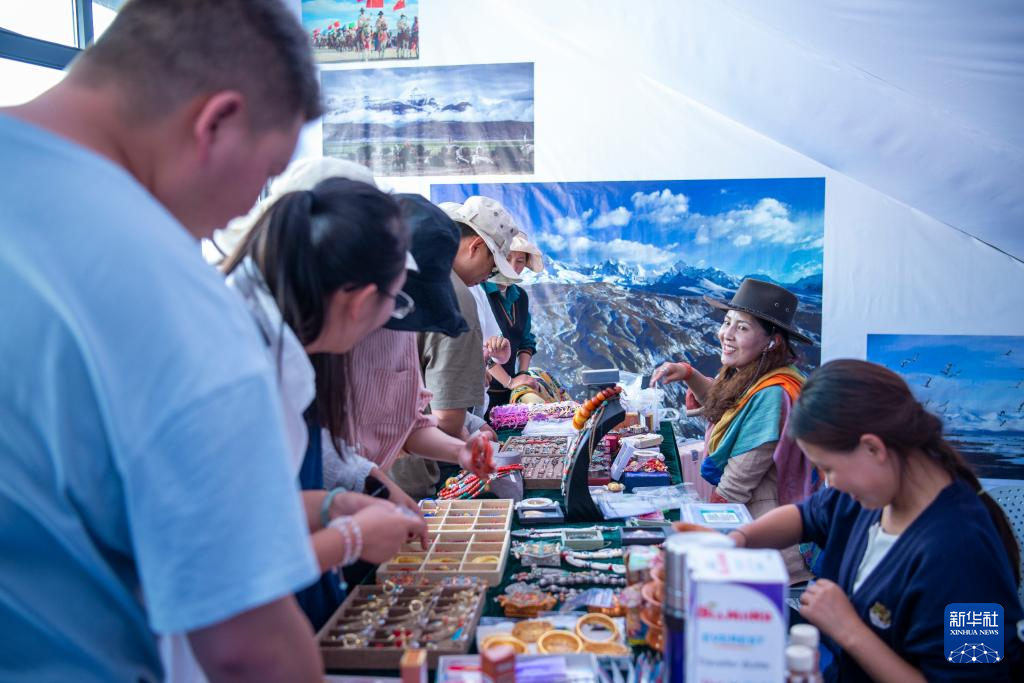 近日,西藏阿里地區(qū)舉辦物資交流會暨旅游紀(jì)念品展銷會,吸引游客參觀購買。特色產(chǎn)品展銷會帶動阿里旅游經(jīng)濟發(fā)展,助力農(nóng)牧民增收致富。