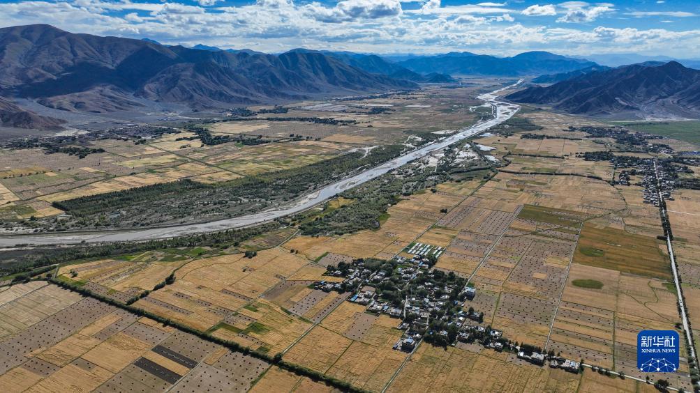 西藏日喀則市年楚河流域是西藏糧食的主產(chǎn)區(qū)之一,今年雨水豐沛,糧食長勢喜人,大地鋪金,農(nóng)民喜迎豐收。