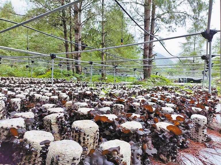 圖為格當(dāng)鄉(xiāng)布龍村林下種植場(chǎng)種植的黑木耳。郎玲 王敏 攝