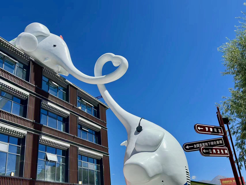 圖為拉薩印街區(qū)創(chuàng)意IP雕塑(9月15日攝)。 柑丹鴦琦 攝