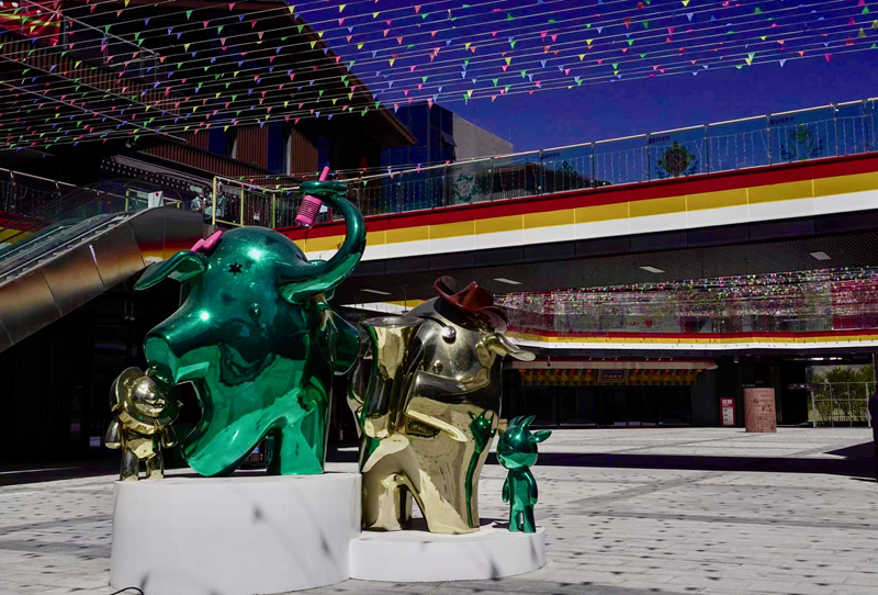 記者日前來到位于柳梧大橋西側(cè)的拉薩印第三代沉浸式主題商業(yè)街區(qū)看到,8棟風(fēng)格古樸又不失現(xiàn)代感、獨立又相互聯(lián)系的商業(yè)建筑群已落成,可愛俏皮、形象各異的街區(qū)創(chuàng)意IP雕塑分布于各顯眼處。星巴克服務(wù)、羅康藏宴、拉薩好物等品牌商家已開始試營業(yè),更多的商家正在入場進(jìn)行店鋪裝修。