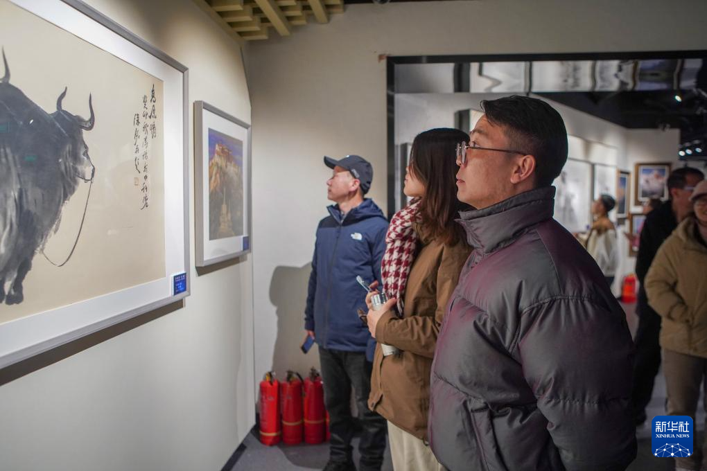 12月17日,參觀者在觀看展出的畫作。新華社記者 邵澤東 攝