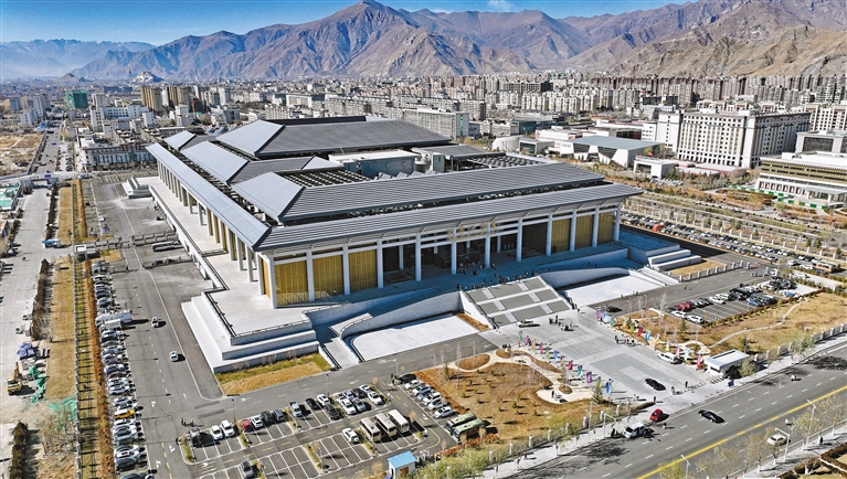 圖為俯瞰西藏大劇院(無(wú)人機(jī)照片)。新華社記者 晉美多吉 攝