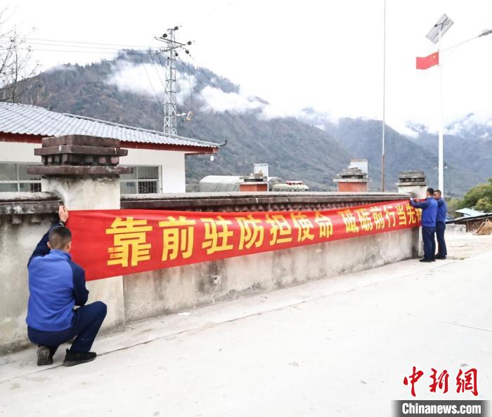 圖為林芝市森林消防支隊懸掛橫幅。趙建宇 攝