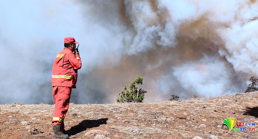 “在高原平地上行走,已經(jīng)相當(dāng)于其他城市負(fù)重40斤?!睏铒w介紹,這是高原森林火災(zāi)救援的一大困難。而這場山火因海拔高、水源地距離遠(yuǎn),遠(yuǎn)程供水成了最棘手的難題。雖然在山坡上架設(shè)超過15組并串聯(lián)水泵,但依然難以滿足撲火一線的供水需求。