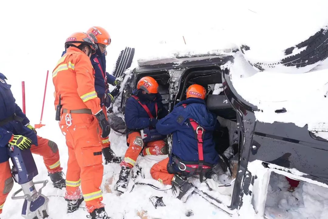 65名隊員到達現(xiàn)場時,天已經黑透,周圍大風呼嘯,數(shù)輛受災車輛被直接埋壓在雪下,救援難度很大,很多隊員都心里直打顫。