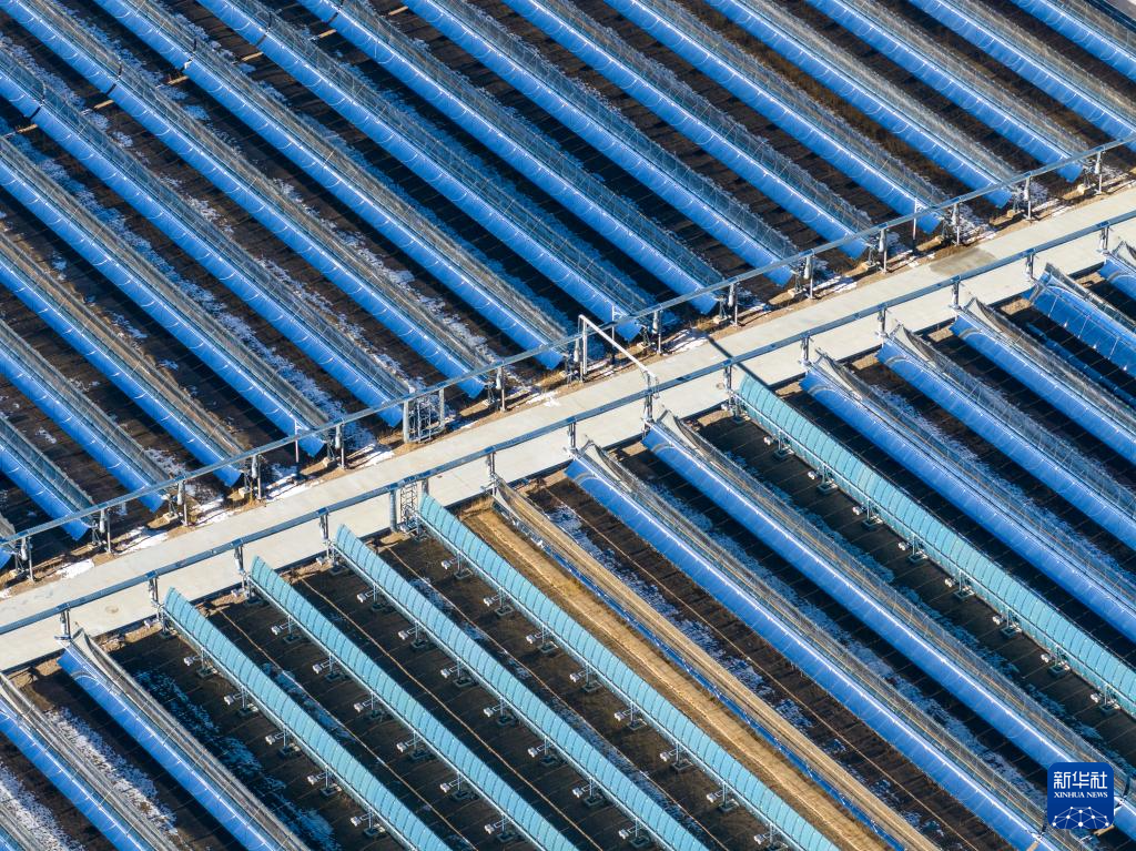 這是申扎縣城集中供暖項(xiàng)目太陽能集熱場(chǎng)局部(1月6日攝)。新華社記者 曹檳 攝