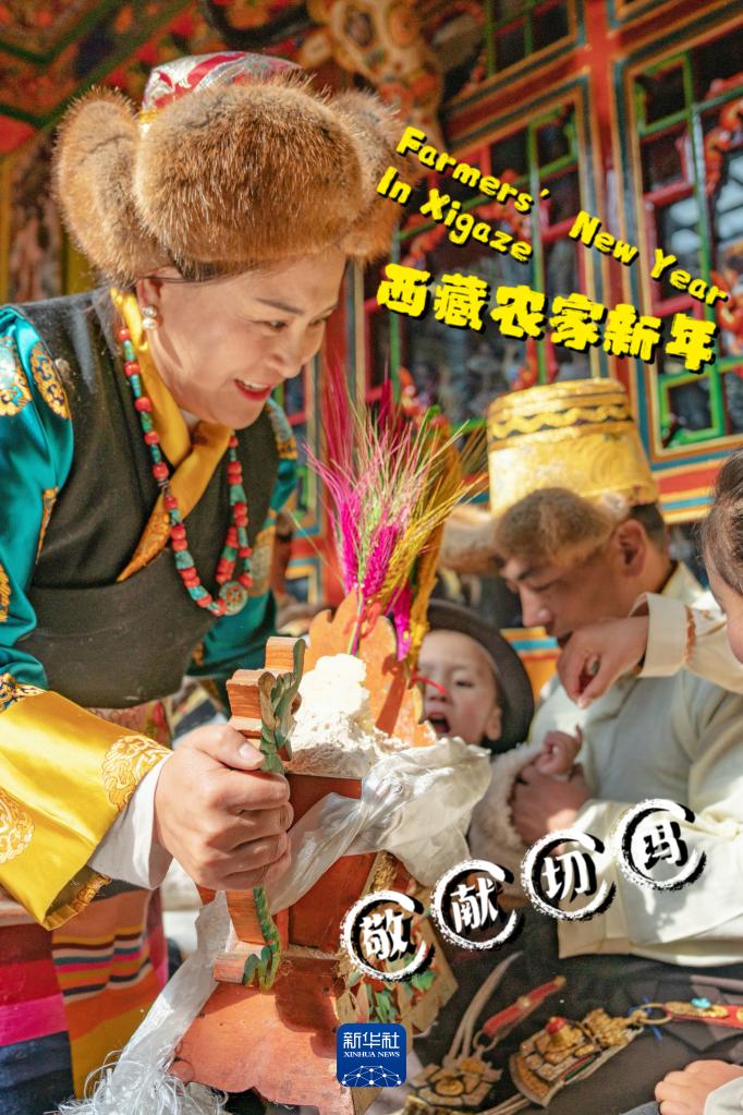 農(nóng)家新年大年初一,敬獻(xiàn)切瑪(又稱五谷豐登斗)有祈愿來(lái)年風(fēng)調(diào)雨順,五谷豐登的寓意(1月12日攝)。