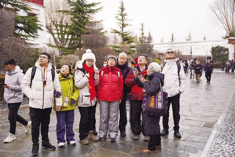 1月16日一大早,拉薩下起了2024年的第一場雪,雪中的布達(dá)拉宮有著別樣的美麗。王碧秀帶著幾位從上海來的游客參觀了這座擁有千年歷史的宮殿,細(xì)致的講解隨著雪花一起,將雪域高原厚重的歷史文化送進(jìn)了游客的心里,撒下了希望的種子。總有一天,這些種子會生根發(fā)芽,帶著王碧秀和無數(shù)導(dǎo)游們的期冀,開出絢麗的花朵,吸引更多人來到西藏、愛上西藏。