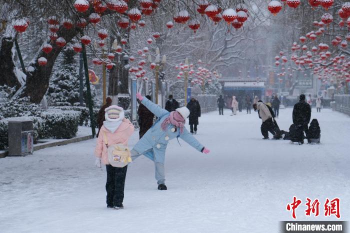 圖為1月18日上午,拉薩民眾在雪中嬉鬧玩耍。江飛波 攝