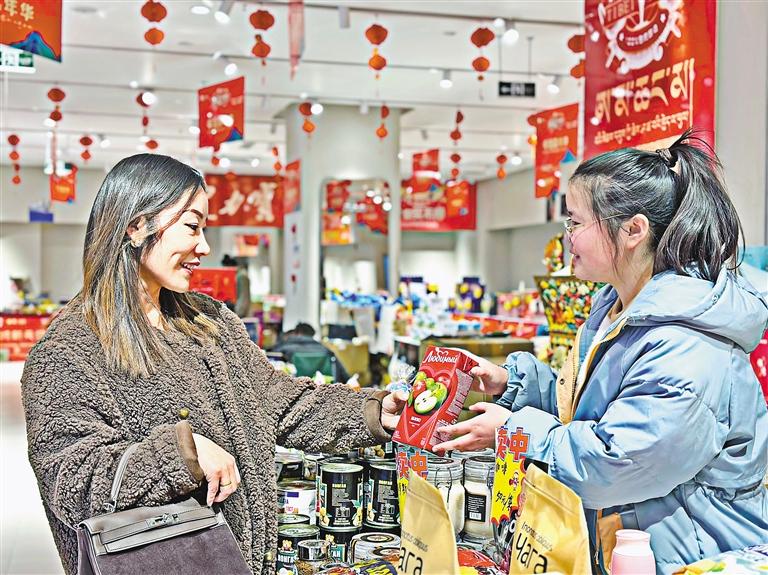 除了傳統(tǒng)年貨市場(chǎng)的八廓商城,拉薩市各大商場(chǎng)、超市也提前備好了年貨。為期9天的“洋”年貨展銷,更是讓共建“一帶一路”倡議呈現(xiàn)在民間交往交流交融中。