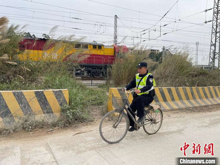 今年60歲的袁倫,是南寧鐵路公安局北海公安處欽州港站派出所的一名線路民警。2024年春運(yùn),臨近退休的袁倫依舊騎著他心愛的自行車,穿梭在鐵路沿線,站好他鐵警生涯中“最后一班春運(yùn)崗”。