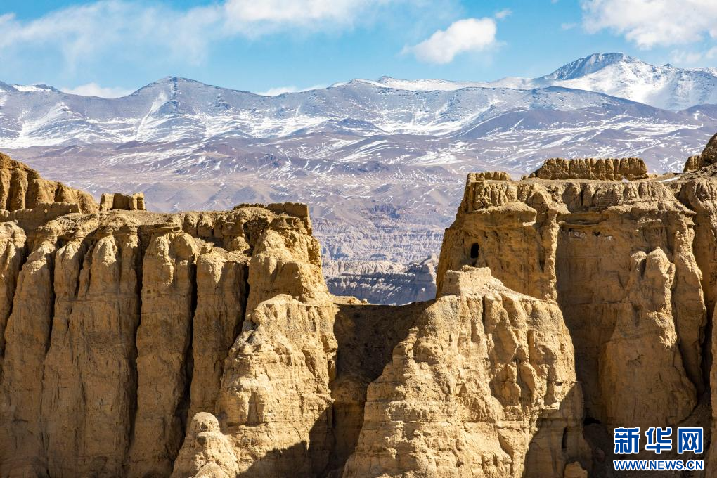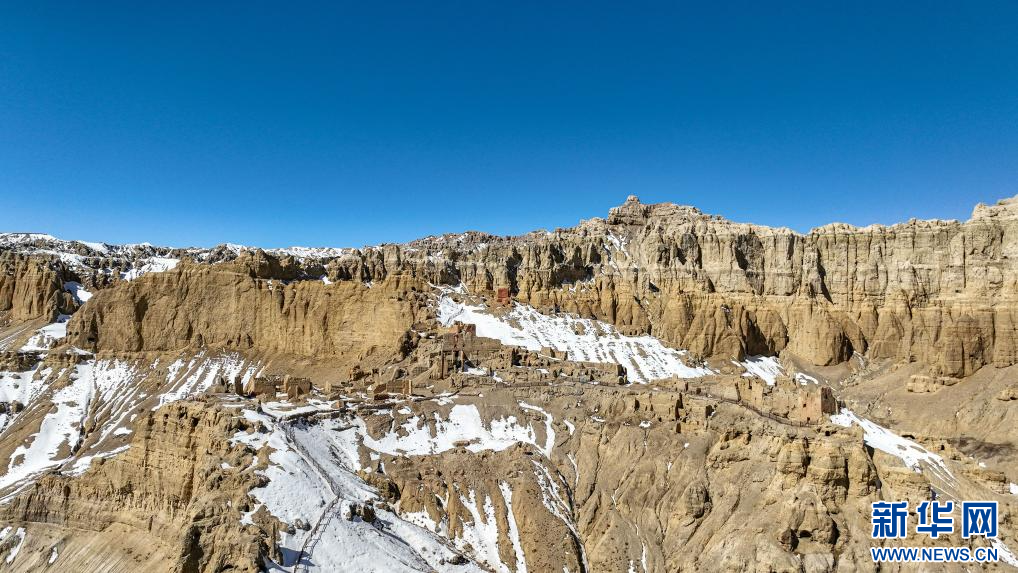達巴遺址位于西藏阿里地區(qū)札達縣境內,其主要建筑分布在兩座山脊之上,整個遺址共有洞穴200余處,且有獨立的碉樓、寺廟建筑遺跡、居民窯洞等建筑,在白雪的映襯下,顯得格外雄渾而神秘。