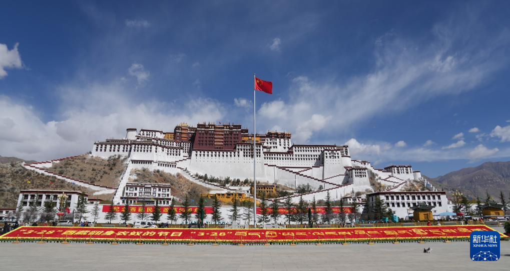 3月28日,拉薩布達(dá)拉宮廣場(chǎng)舉行升旗儀式。新華社記者 張汝鋒 攝