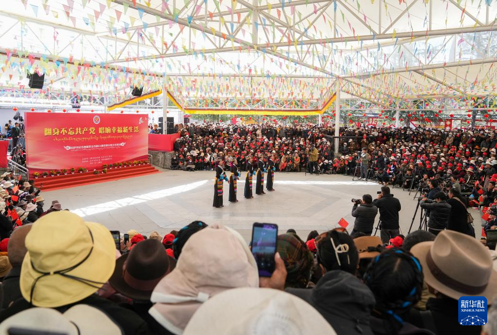 當(dāng)日,西藏各族各界群眾升國(guó)旗、唱國(guó)歌,載歌載舞,隆重紀(jì)念西藏百萬農(nóng)奴解放65周年。