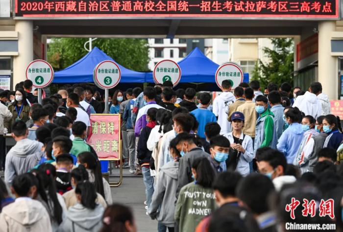 2020年7月7日,拉薩三高考點(diǎn)外,考生有序排隊(duì)進(jìn)入考場。何蓬磊 攝