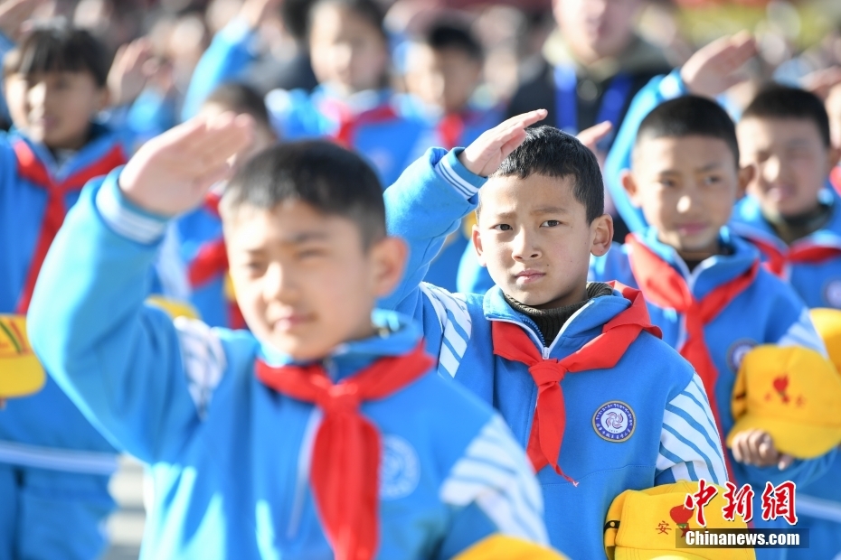 3月28日,西藏各族各界人士聚集在拉薩布達拉宮廣場,升國旗、唱國歌,參加西藏百萬農(nóng)奴解放65周年紀(jì)念活動。圖為升國旗儀上的學(xué)生代表。中新社記者 貢嘎來松 攝