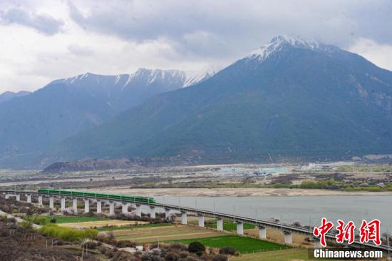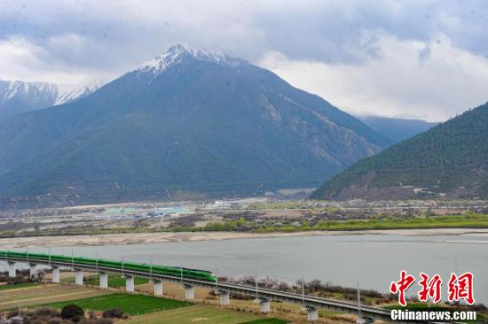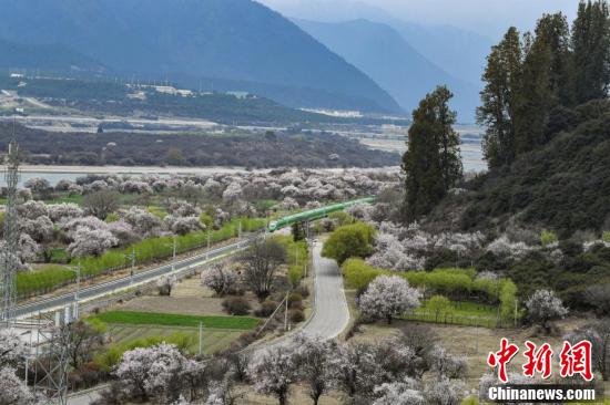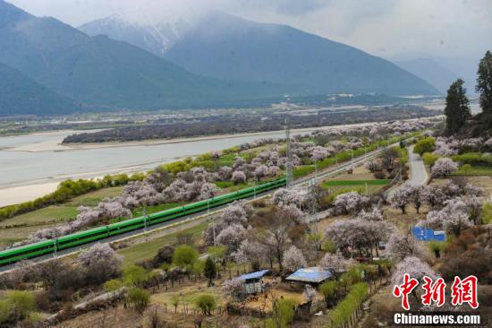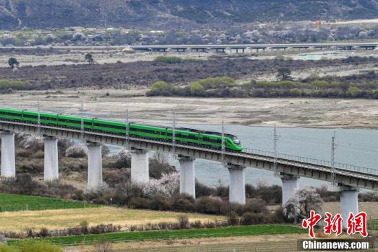 據(jù)悉,拉林鐵路是一條連接西藏拉薩市與林芝市的國(guó)鐵Ⅰ級(jí)單線電氣化鐵路,全長(zhǎng)435公里,設(shè)計(jì)時(shí)速160公里,于2021年6月25日開通運(yùn)營(yíng)。圖為穿梭在桃花林中的拉林鐵路高原復(fù)興號(hào)。