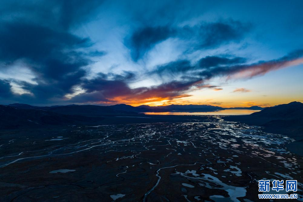 4月14日,傍晚從申扎縣縣城拍攝的色林錯(cuò)景致(無(wú)人機(jī)照片)。新華網(wǎng) 旦增努布 攝