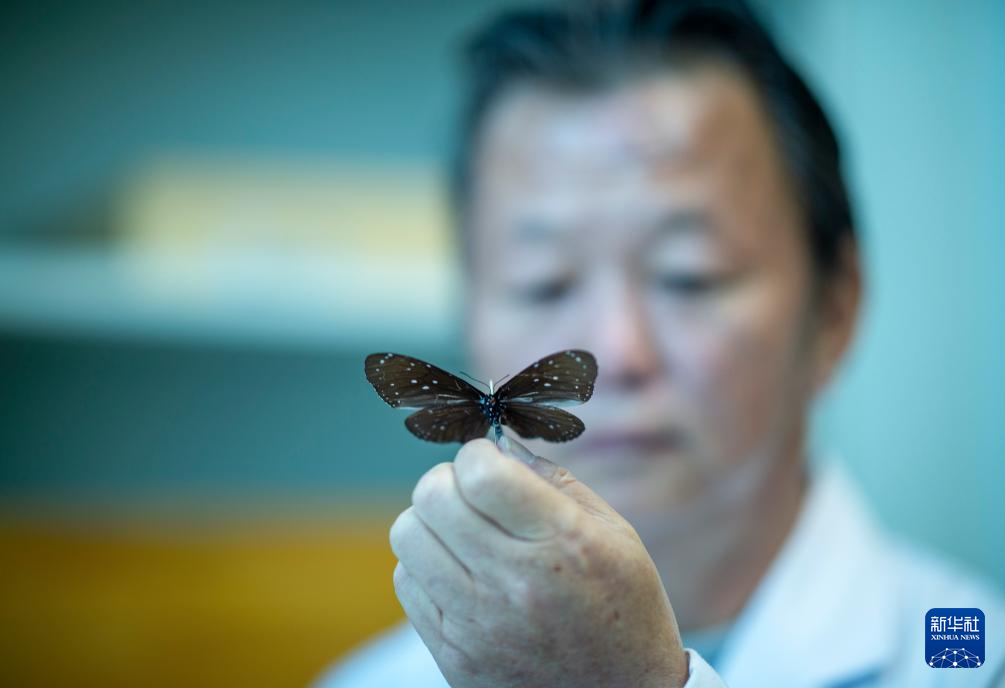 達(dá)娃在位于拉薩的西藏自治區(qū)高原生物研究所識別蝴蝶樣品特征(4月22日攝)。新華社記者 旦增尼瑪曲珠 攝