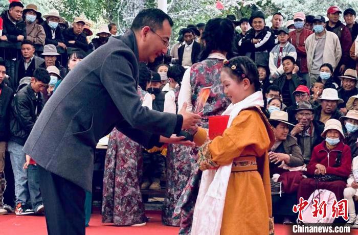 拉薩市堆龍德慶區(qū)第四小學(xué)四年級(jí)學(xué)生貢尕尼瑪說(shuō):“很開(kāi)心今天能夠站在這里跟大家講述我的祖父跟隨十八軍進(jìn)藏的故事,我覺(jué)得很驕傲也很自豪”。