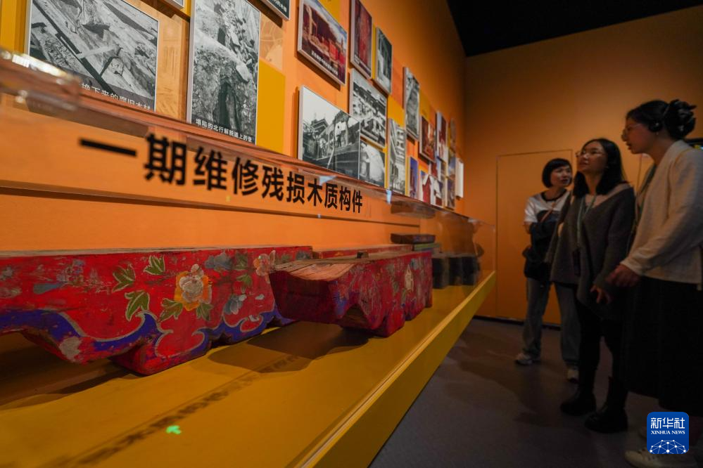 5月11日,觀眾在展出現(xiàn)場參觀布達拉宮一期維修殘損木質(zhì)構(gòu)件。新華社記者 李博 攝