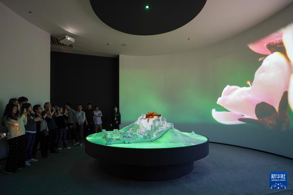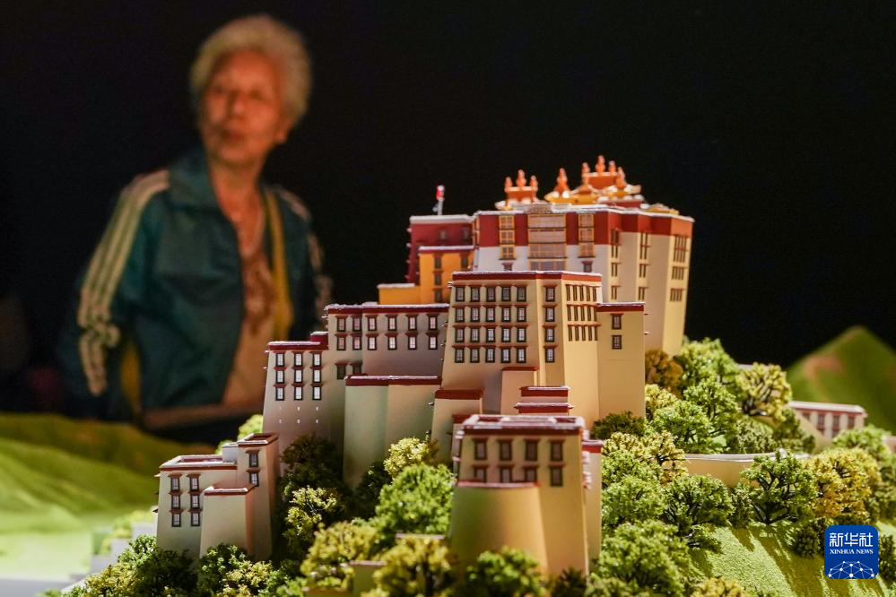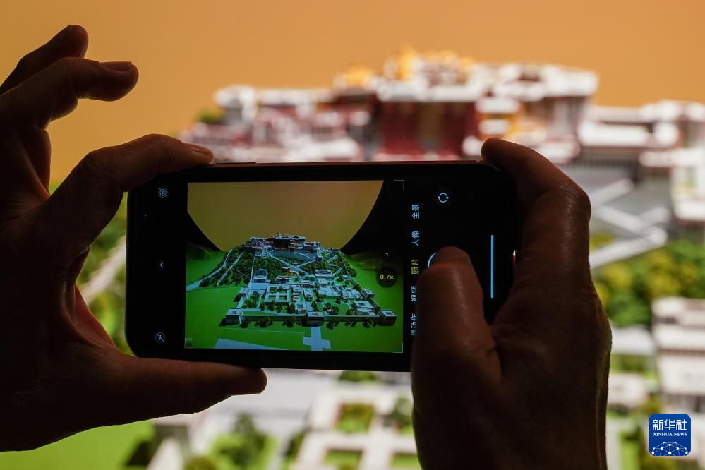 5月11日,觀眾在展出現(xiàn)場參觀拍攝布達拉宮模型。新華社記者 李博 攝