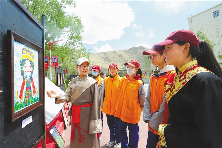近日,拉薩市墨竹工卡縣中學(xué)舉行了以《我們有“畫”說》為主題的師生繪畫展活動,200余幅作品內(nèi)容涉及民族團(tuán)結(jié)、愛護(hù)環(huán)境、人物等,色彩明快、構(gòu)思巧妙,傾訴著師生們對祖國的深情摯愛。