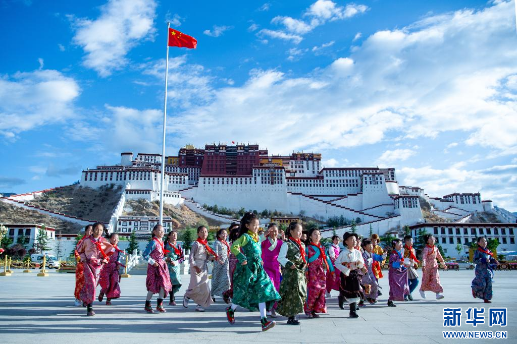 “六一”國際兒童節(jié),小朋友們?cè)谖鞑刈灾螀^(qū)拉薩市布達(dá)拉宮廣場歡慶自己的節(jié)日。