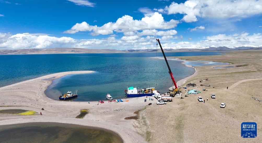 近日,中國科學院青藏高原研究所湖泊與環(huán)境變化研究團隊與德國、瑞士、英國、美國等多國科學家和鉆探技術人員組成的聯合科考隊,在西藏納木錯開展科學考察活動??蒲腥藛T在納木錯開展湖泊巖芯鉆探,為開展青藏高原過去一百萬年以來氣候環(huán)境變化研究提供新的科學依據。