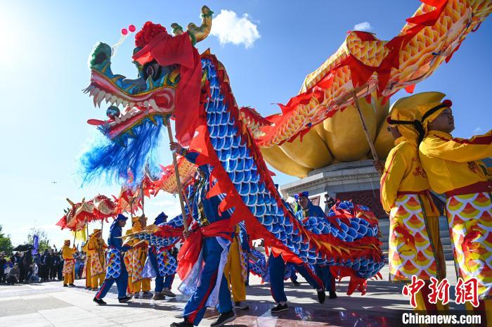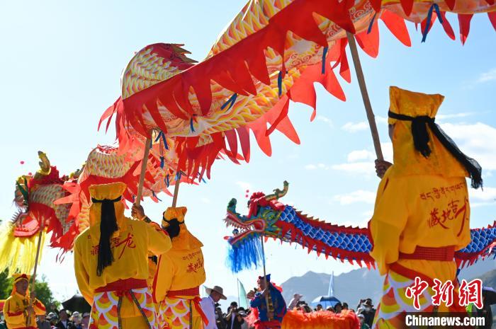 圖為“舞龍表演”現(xiàn)場。貢嘎來松 攝